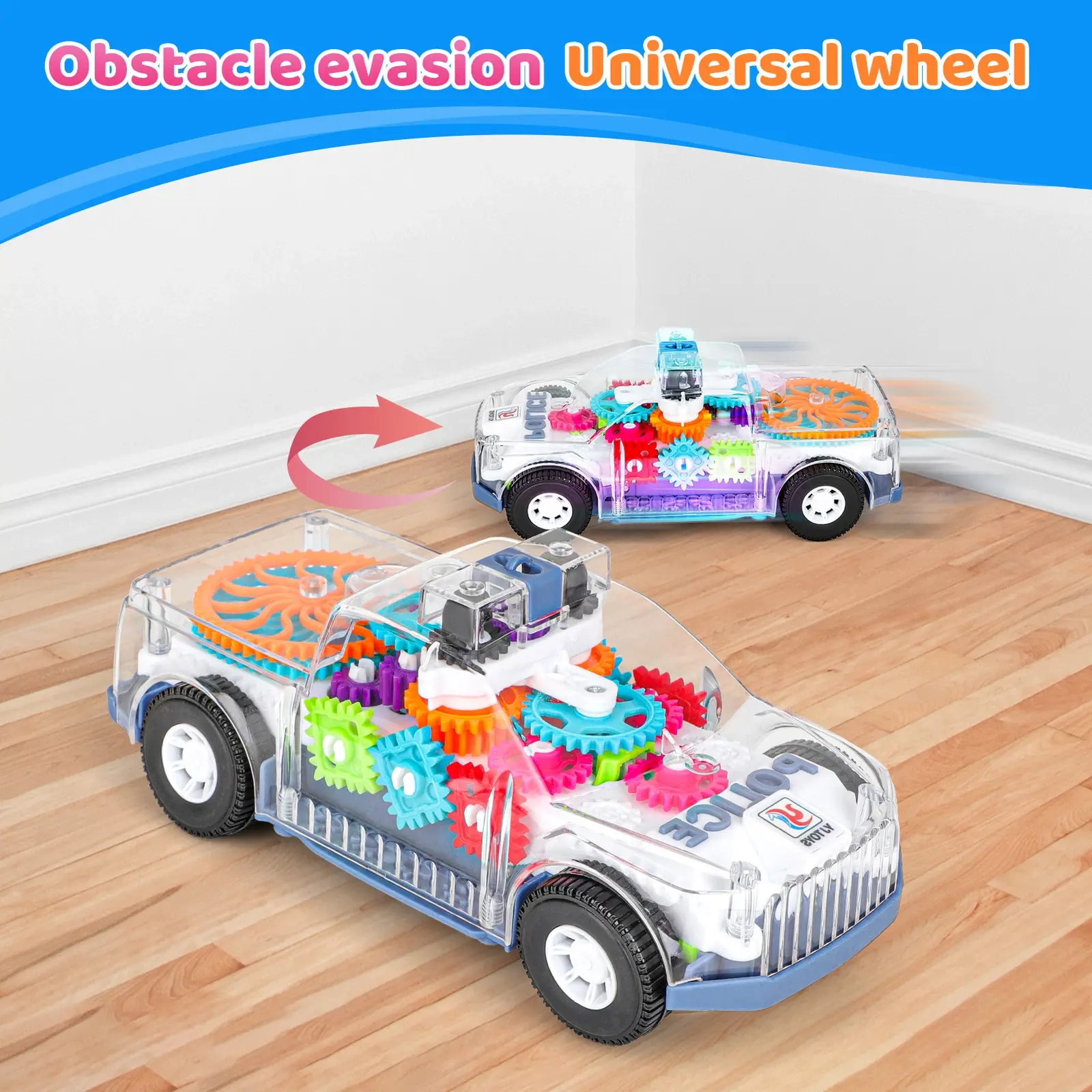 ইলেকট্রিক ট্রান্সপারেন্ট পুলিশ গিয়ার কার নিয়ে আসুন, যা ৩৬০° রোটেটিং এবং রিয়েলিস্টিক লাইট ও সাউন্ডসহ! 🛸